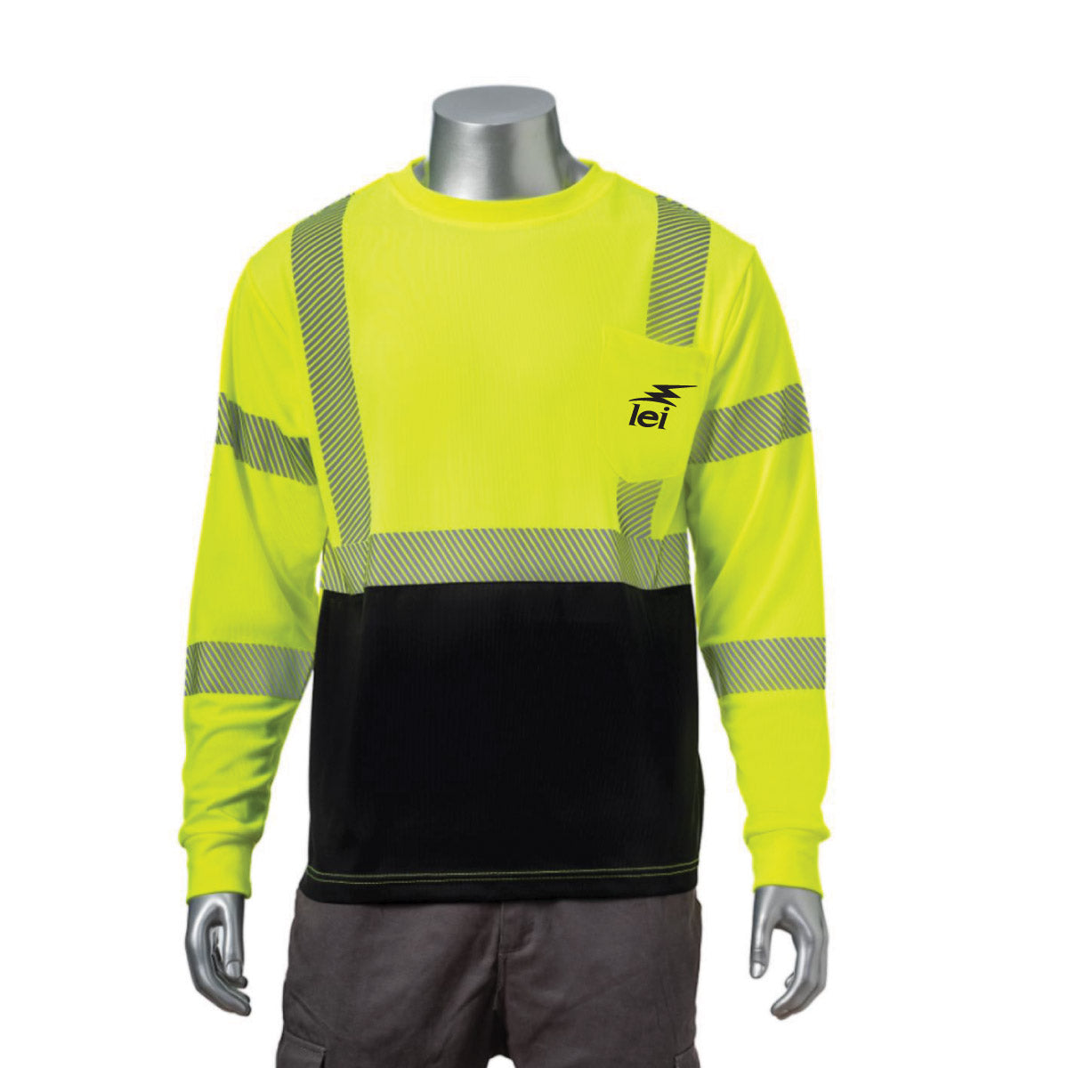 A 3.8 oz (130 GSM) birdseye mesh long sleeve t-shirt with enhanced visibility.