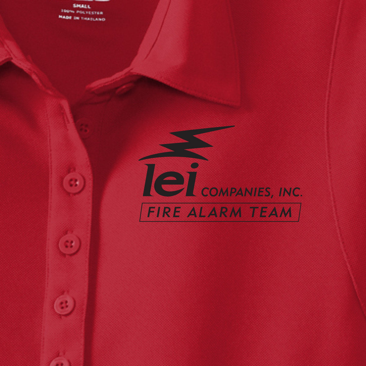 A high-performance polo with Fire Alarm Team embroidered on the left chest.