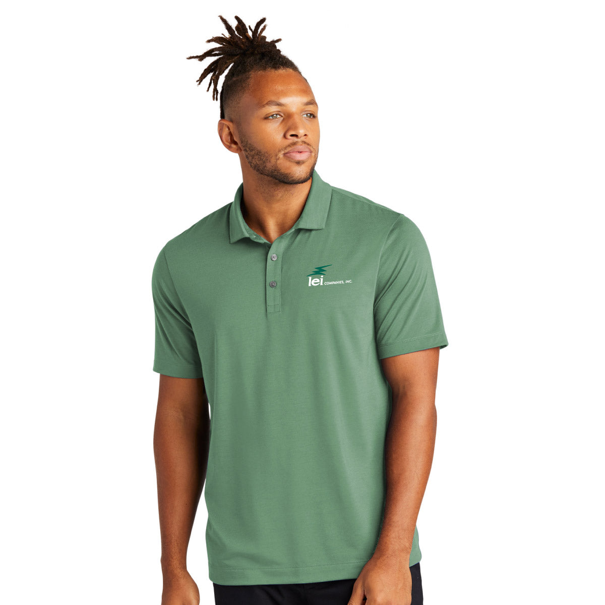 For a more style-forward polo, everyday pique knit is replaced with a soft jersey blend for a subtle drape and a smooth hand. Moisture-wicking and self-turned cuffs and hems.